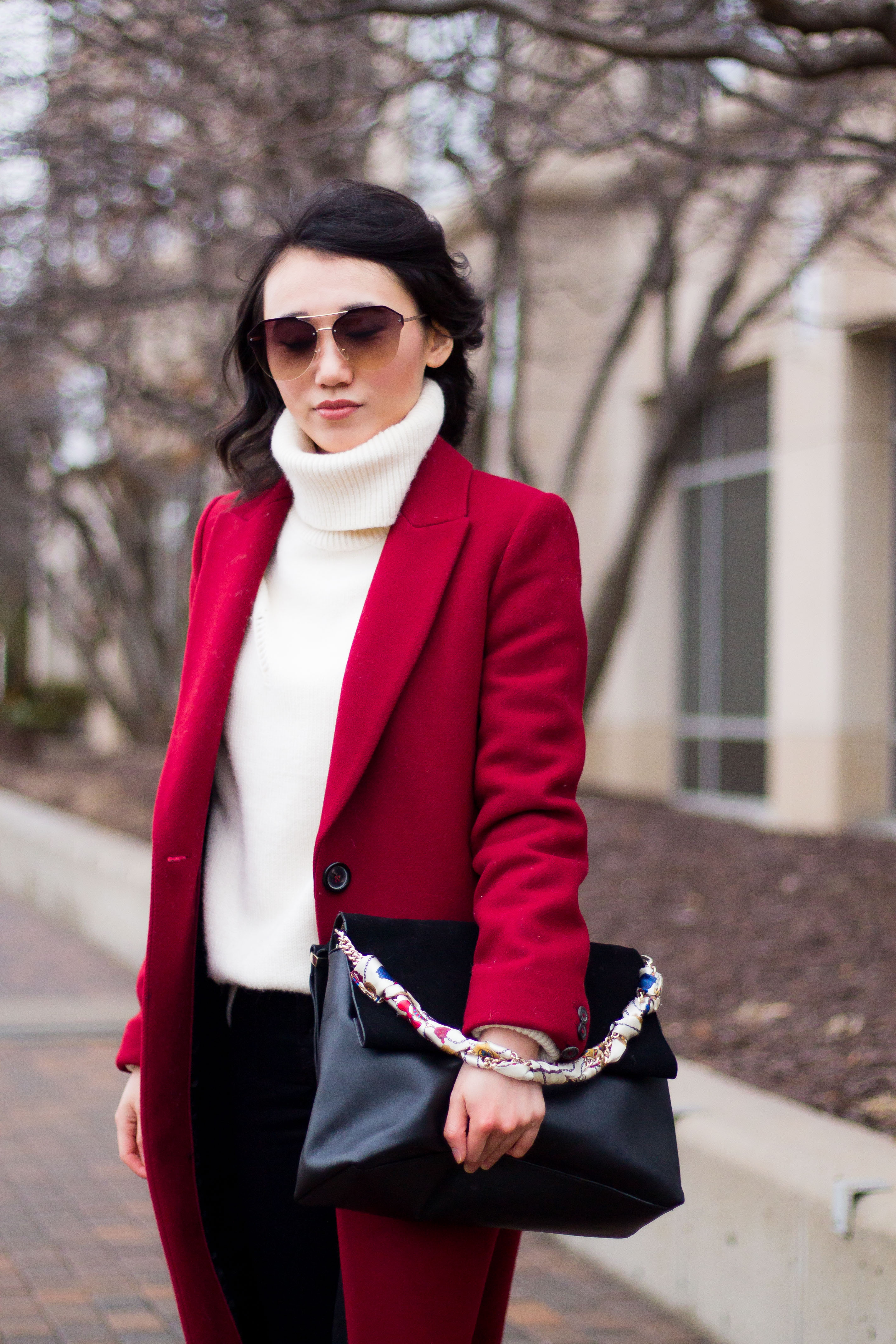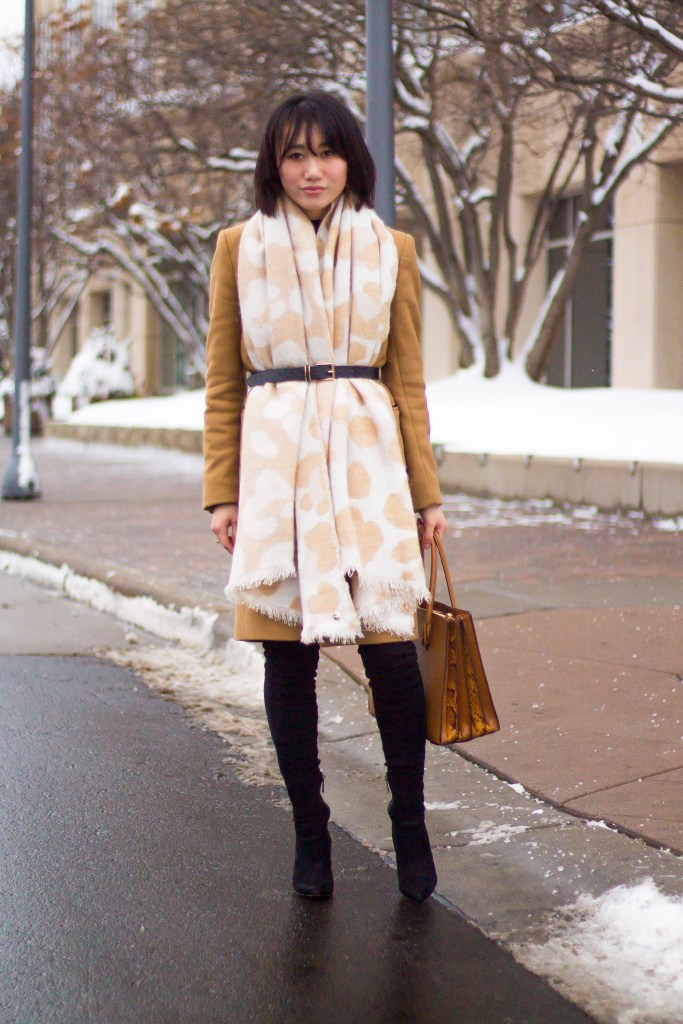 Zara Wool Coat* (Similar HERE & HERE) | Express Scarf | Joie OTK Boots* Similar HERE & HERE) | Michael Kors Handbag